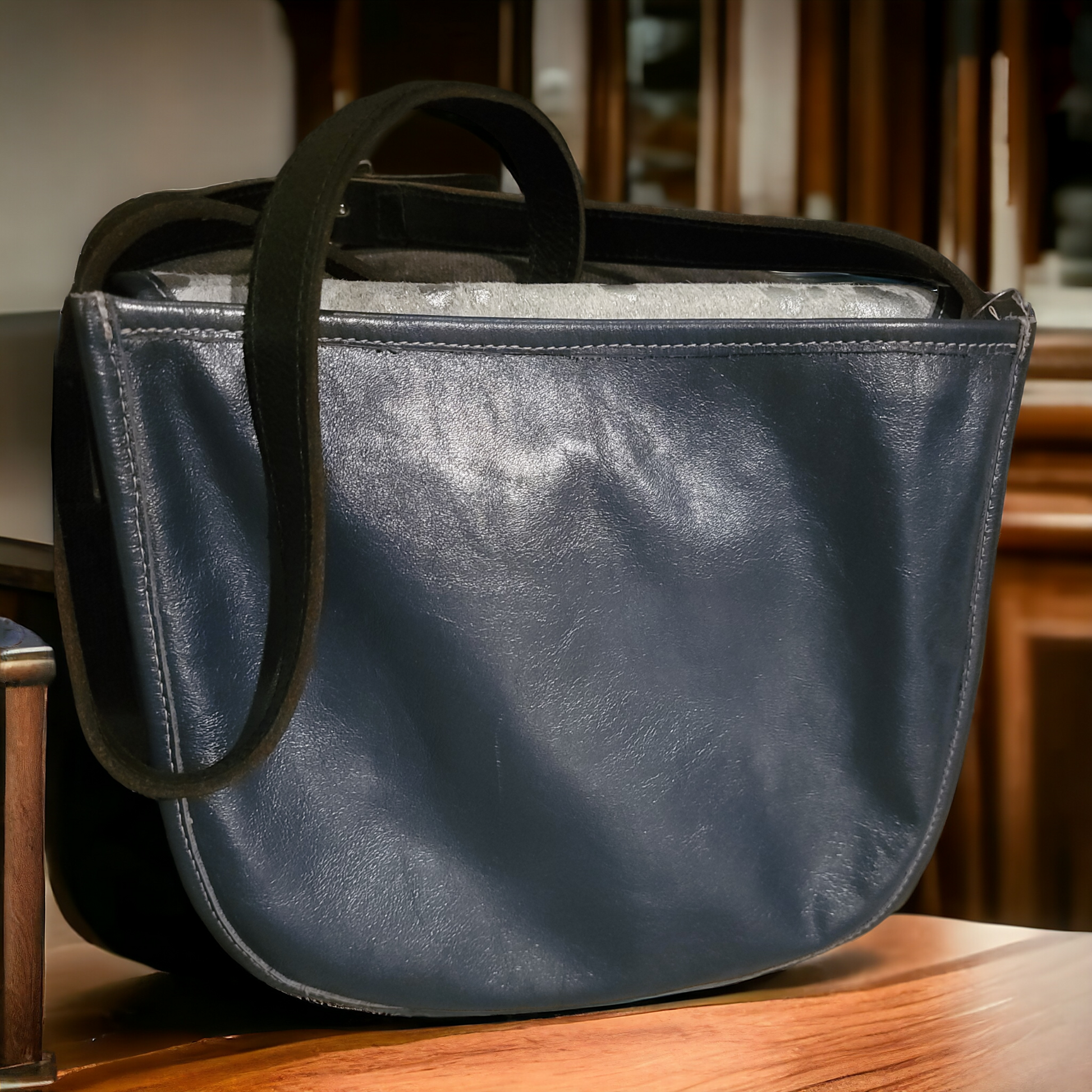 Genuine cow hide fur and print ~ Leather medium fringed cross body