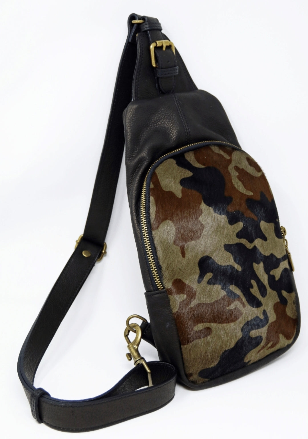 - Genuine cow hide fur and Leather All Gender Messenger sling satchel
