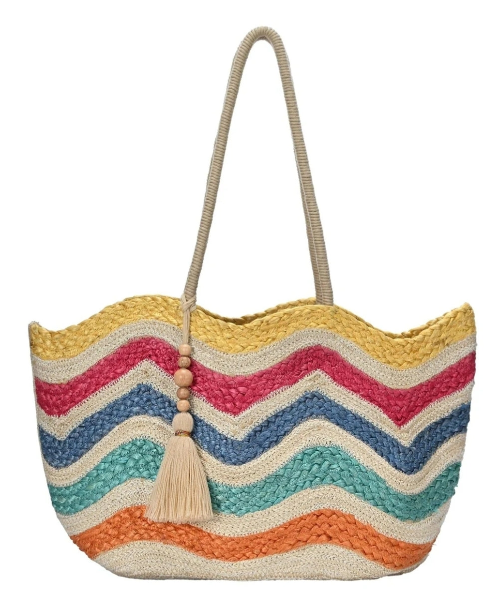 Get ready to make a splash this summer with our wavy rainbow straw tote bag! Perfect for carrying all your essentials (and turning heads), this bag is a must-have accessory for any sunny adventure. Embrace the sunshine and show off your style with our Wavy Rainbow Straw Tote Bag!